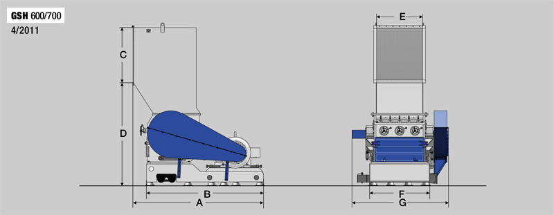 La serie de molinos granuladores de cuchillas GSH están diseñados para trabajar con materiales duros y pesados, ofrecen variedad de diseños del rotor con grosores que oscilan entre los 800mm y 1000mm, y con diámetros de 600 y 700mm respectivamente.
