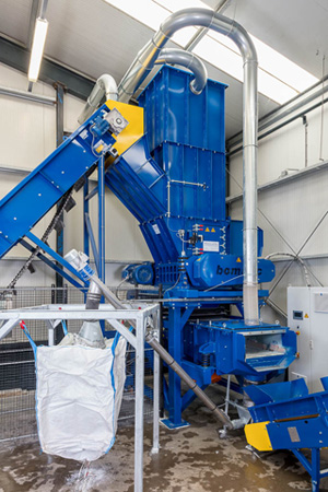 La trituradora Bomatic modelo B1000DD cuenta con un motor de 60 kW ( 2 x 30 kW ), es una trituradora de cuchillas, concretamente el cliente cuenta con cuchillas de 30 mm.