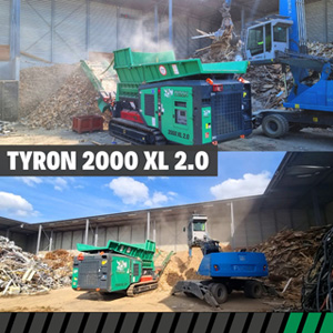 Los residuos de madera de las categorías A a C se están triturando en la empresa Schwarz Rohstoff GmbH situada en Oberderdingen ( Alemania ) con el triturador HAAS modelo TYRON 2000 XL 2.0. Este equipo cuenta con herramientas para un resultado fino y está procesando aproximadamente 30.000 toneladas al año con un resultado inferior a 250 mm.