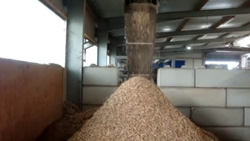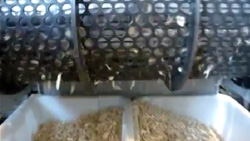 El empujador hidráulico es controlado según la carga nominal del motor de accionamiento. La criba montada debajo del rotor define el tamaño final.