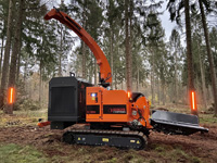 La astilladora EC 850 dispone de un motor Caterpillar de 300 CV permite triturar troncos de hasta 500 mm llegando alcanzar hasta los 100 m3/h.
